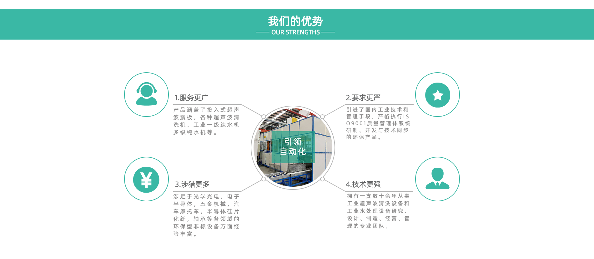 天津市引領(lǐng)自動(dòng)化科技有限公司是由一支擁有數(shù)十余年工業(yè)超聲波清洗設(shè)備和工業(yè)水處理設(shè)備研究、設(shè)計(jì)、制造、經(jīng)營、管理、銷售、服務(wù)于一體的企業(yè)。 公司匯集了一批長期致力于工業(yè)清洗設(shè)備和工業(yè)水處理設(shè)備研發(fā)、設(shè)計(jì)、制造的人才,引進(jìn)了國內(nèi)外的工藝技術(shù)和管理手段,嚴(yán)格執(zhí)行ISO9001質(zhì)量管理體系,研制、開發(fā)與技術(shù)同步的環(huán)保產(chǎn)品。選用日本、美國等原材料、元器件,以設(shè)備、熱忱的服務(wù)、合理的價(jià)格為廣大用戶提供質(zhì)量穩(wěn)定、外形美觀的十多個(gè)系列、百余個(gè)規(guī)格的超聲波清洗設(shè)備、高壓噴淋清洗設(shè)備、工業(yè)水處理設(shè)備。產(chǎn)品涵蓋了投入式超聲波震板,單槽式超聲波清洗機(jī)、多槽式超聲波清洗機(jī)、氣相型清洗機(jī)、自動(dòng)型超聲波清洗機(jī)、碳?xì)漕惓暡ㄇ逑礄C(jī),高低壓噴淋清洗機(jī)等以及工業(yè)冷水機(jī),工業(yè)一級(jí)純水機(jī)多級(jí)純水機(jī)等。 產(chǎn)品具備完善的售前,售中,售后服務(wù)制度。尤其在開發(fā)設(shè)計(jì)光學(xué)光電,電子半導(dǎo)體,五金機(jī)械,汽車摩托車,電池,半導(dǎo)體硅片,化纖,軸承等各領(lǐng)...